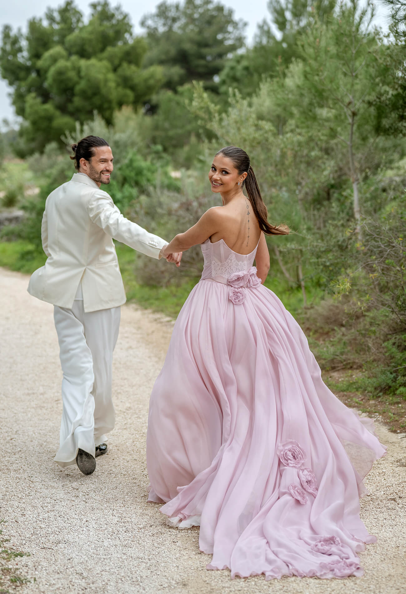 Location perfetta per raccontare la storia di Oliver e Amelia. Arrivati dall’Inghilterra, hanno scelto la nostra terra per celebrare il loro destination wedding in Puglia, tra i muretti a calce che riflettono una luce quasi sacra e l’ombra benevola degli ulivi secolari.